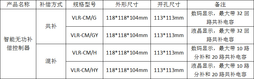 VLR系列智能無功補償控制器與VLR系列的低壓智能電容器配套使用,產品外形美觀大方,通用儀表尺寸,安裝使用方便。人機聯系使用數碼管(或液晶屏)顯示,與智能電容器通訊連接,具備采集并顯示電測量數據,監測和顯示智能電容器運行工況、投切狀態,以及根據無功功率與功率因數自動控制投切電容器等功能。控制物理為電壓、電流、功率因數和無功功率復合型,動作次數少,控制精度高。