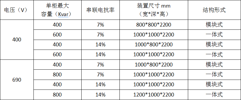 裝置內部接線默認為角接分補。上述產品列表是標準型產品。另外,裝置容量、最小步長、總路數以及接線方式都可以根據用戶的要求進行定制。